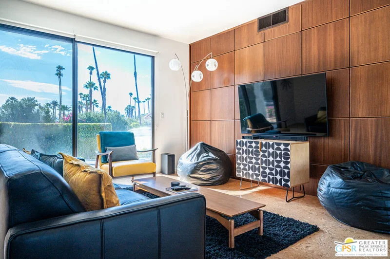 Resort Style Living at Cathedral Canyon Country Club! This light & bright furnished home has beautiful mountain views surrounded by palm trees, located on a quiet cul-de-sac with lots of green space. Cathedral Canyon CC has a 18 hole golf course, tennis courts, pool, spa and clubhouse. This spacious 2 bed 2 bath home has been upgraded with gorgeous cork flooring throughout, mahogany wall in living room, views from living room, open dining & kitchen with stainless steel appliances, both bedrooms are primary with en suite. Pet friendly community! Large 2 car garage with car charger & tankless water heater & extra storage space. Beautiful community pool and spa just steps from your door. Private courtyard area in front with gates and nice patio area off living room with BBQ. This home has solar with 10 panels so its easy to keep cool & enjoy. Solar is leased at $154.65/per month for 24 years and has 2 batteries which makes this energy independent. Land lease of $219.18/per month and land lease until Sept 13, 2061 (36 years on land lease). current loan is assumable @4% $236,094 call agent for info. Easy access to Country Club and Golf. Easy to get to Palm Springs, Rancho Mirage and Palm Desert all offering great restaurants, shopping and much more. Palm Springs Airport 12 minutes away. The World Famous "El Paseo" shopping district located in Palm Desert is a 10 minute trip. This home has it all! Move right in.