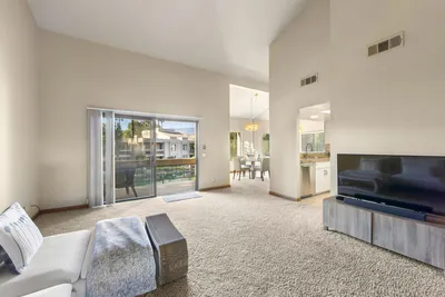 Welcome to your desert retreat in the gated Cathedral Canyon Country Club, where stunning mountain views, dramatic desert skies, and a peaceful, quiet setting offer a true escape from the hustle of city living. This spacious, light-filled home features an open floor plan designed for comfort and easy entertaining, enhanced by a large sliding glass door in the living room that floods the space with natural light and creates seamless indoor-outdoor living.The kitchen offers ample counter space and a convenient laundry closet with a full-size washer and dryer. The living room includes a built-in bar and clever under-the-stairs storage, providing functionality without sacrificing space. A half bath on the main level adds everyday convenience and makes entertaining guests effortless.Upstairs, two expansive primary suites provide privacy and flexibility, each with a walk-in closet and private en-suite bath--offering the best of both worlds. The west-facing primary suite features a standing shower, beautiful mountain views, and a private balcony perfect for enjoying breathtaking desert sunsets. The east-facing primary suite offers partial golf course views, a tub/shower combination, and a dedicated space ideal for a desk or cozy reading nook, allowing you to enjoy morning light. Step outside to your private patio framed by breathtaking mountain scenery, just steps from the community pool. Retractable awnings provide shade for year-round enjoyment. Additional highlights include a covered garage and beautifully maintained grounds.This condo has been gently used and meticulously maintained, with the upstairs carpet like new. For added peace of mind, the air conditioning was serviced last summer, ensuring comfort year-round. Cathedral Canyon Country Club offers amenities including a championship golf course and heated pools, all within a tranquil, well-kept community that feels tucked away--yet remains centrally located near shopping, dining, and entertainment. Homes offering this combination of views, outdoor spaces, functionality, and quiet resort-style living are rarely available--don't miss this opportunity.