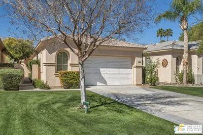 Fantastic Opportunity in Cathedral Canyon Country Club! Offered at an unbeatable price, this spacious 2-bedroom, 2-bath condo is an exceptional value in the highly sought-after Cathedral Canyon Country Club, a secure gated community with resort-style amenities including multiple pools, spas, and more. With nearly 1,500 square feet of living space, this home is full of potential. Featuring great bones, soaring high ceilings, and a rare two-car garage, the condo provides an ideal canvas for customization. The well-designed floor plan includes spacious rooms, a large kitchen, and a cool wet bar, perfect for entertaining and everyday living. Abundant natural light enhances the open, airy feel throughout. Enjoy two private patios, including one that opens to peaceful green space, offering a serene indoor-outdoor connection. While the home could benefit from updating, it is priced accordingly, presenting a fantastic opportunity to add value in a desirable community. The location is ideal, close to shopping, entertainment outdoor activities and all the Coachella Valley offers. A rare chance to secure a generously sized condo at an unbeatable price, bring your vision and make it your own.