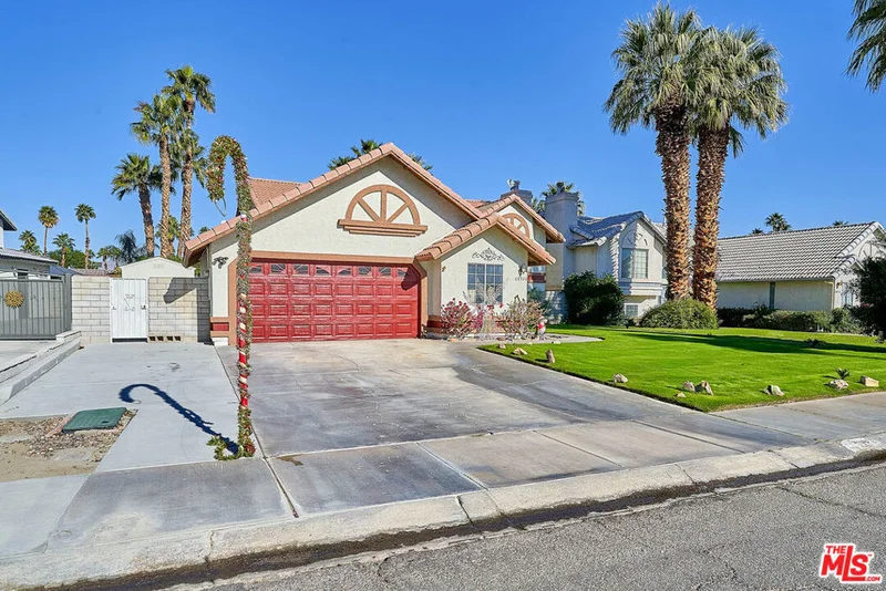 Nestled on Minerva Road in the heart of Cathedral City, this split-level home offers a comfortable and inviting living space. With a south-facing orientation and functional floor plan, the home features 4 bedrooms, 3 bathrooms, and a versatile bonus room that can serve as an office, gym, or media room. It's ideal for multigenerational households seeking flexible living options. The bonus room can serve as a private suite for grandparents or adult children, or function as a home office, gym, or media room. The kitchen has granite countertops and stainless steel appliances. The adjacent dining area opens to a deck with mountain views, perfect for enjoying your morning coffee or evening cocktails. The backyard is an entertainer's dream, with a pool and Jacuzzi, a pergola for shaded outdoor dining, and established landscaping including mature orange, tangerine, and grapefruit trees. A storage shed and 2 car garage provide ample space for all your outdoor equipment and toys. Conveniently located near schools, hiking trails, golf courses, and downtown Cathedral City's shops, restaurants, and galleries. Enjoy the Coachella Valley's festivals and events, without HOA fees or leased land .This home is situated on a street known locally as "Candy Cane Lane" for its holiday light displays each December. With generous storage, flexible living spaces, and a backyard made for hosting, this property offers a fantastic opportunity for multigenerational families seeking a home in a desirable location.