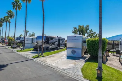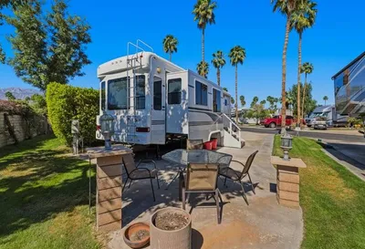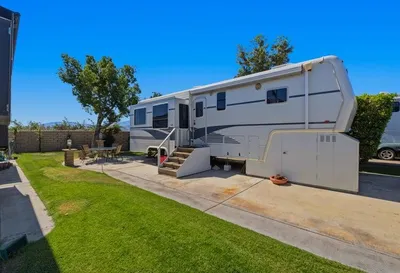 Discover this fantastic starter package in a prime, popular resort location! This beautiful wall lot, conveniently located near La Palma Clubhouse and Satellite C, offers a fantastic opportunity. Decent sized greenbelt behind for your pets. Included is a 2002 Teton RV in very well cared for condition, providing the perfect balance of comfort and coziness. Whether you're looking for a seasonal escape or a full-time haven, this lot and RV combo is an incredible opportunity to own a lot/rv at a fantastic price. Start making memories now.
