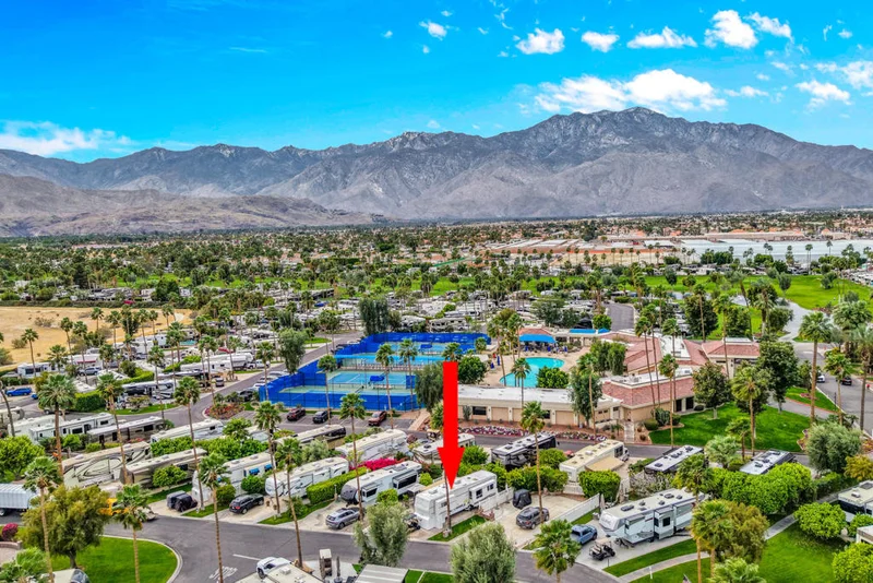 Nice lot with extended patio in Outdoor Resort Palm Springs. This inviting property features an expanded patio area with mature hedges at the rear, providing added privacy and a comfortable outdoor setting.The lot includes overstuffed patio furniture with a firepit table and four chairs, an additional outdoor dining table with four chairs, BBQ, cantilever umbrella, and more, making it easy to start enjoying the outdoor space right away.Ideally located close to the newly renovated Satellite C, which offers a pool, spa, bathrooms with showers, laundry facilities, and a tennis court for your convenience.A great opportunity to own a well-located lot in the resort and create your perfect outdoor retreat while enjoying the many amenities of Outdoor Resort Palm Springs. Resorts Palm Springs is a Five Star RV Resort Community combining luxury with affordability. It is a guard gated resort that sits on 137 beautifully landscaped acres with 27 holes of executive golf, 10 tennis courts, 13 pickleball courts, 8 swimming pools, a fully equipped fitness center, sports bar, beauty salon/barber shop, full-service restaurant, 2 club houses, activities, special events and so much more.