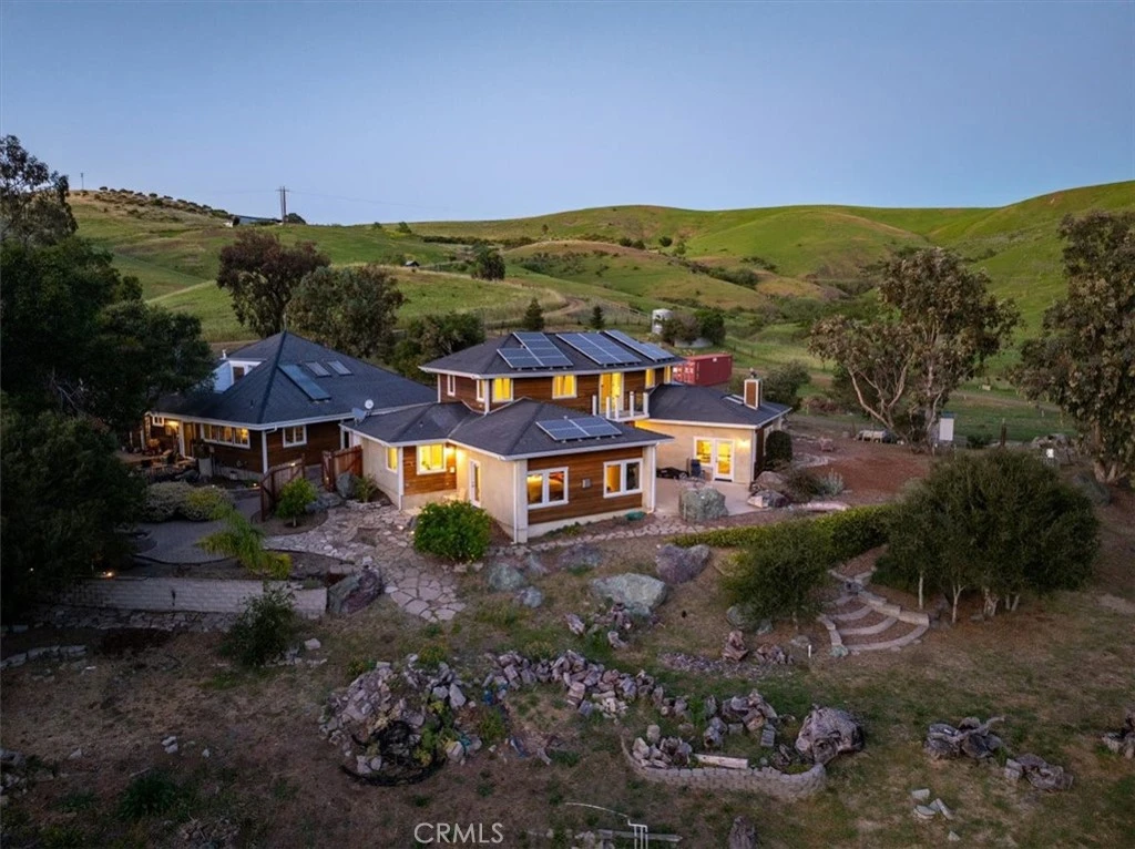 Set just outside Cayucos, this exceptional 40-acre ranch offers privacy, scale, and versatility in one of the Central Coast’s most desirable rural settings. Rolling hills frame the property, creating a natural sense of seclusion while remaining just minutes from the beach and town. A sense of rural elegance defines the property, blending refined design with the relaxed beauty of the surrounding landscape. The main residence spans approximately 3,249 square feet and features 3 bedrooms and 2 and a half baths. Thoughtfully constructed with straw bale construction, the home offers remarkable insulation, energy efficiency, and a quiet, solid feel throughout. Low E windows enhance comfort and efficiency while welcoming natural light and showcasing the surrounding landscape. Inside, tumbled travertine floors add warmth and timeless character, complementing the home’s organic design. Generous living spaces include expansive windows and multiple gathering areas that provide a comfortable balance of openness and warmth. Integrated smart lighting enhances both convenience and ambiance, blending modern functionality with the relaxed ranch setting. A detached three car garage adds practicality, while the separate 1,089 square foot one bedroom one bath residence offers flexibility for guests, extended family, rental income, or on-site caretakers. The land itself is the true highlight. Forty acres of gently rolling terrain provide usable ground with potential for equestrian use, small scale agriculture, vineyard, or simply wide open space to enjoy. Mature trees, established greenery, and natural contours create privacy and visual interest throughout the property. This is a rare opportunity to own a substantial ranch estate just outside Cayucos, where coastal proximity meets rural freedom. Whether envisioned as a private retreat, multi-generational compound, or working ranch, the possibilities here are significant.