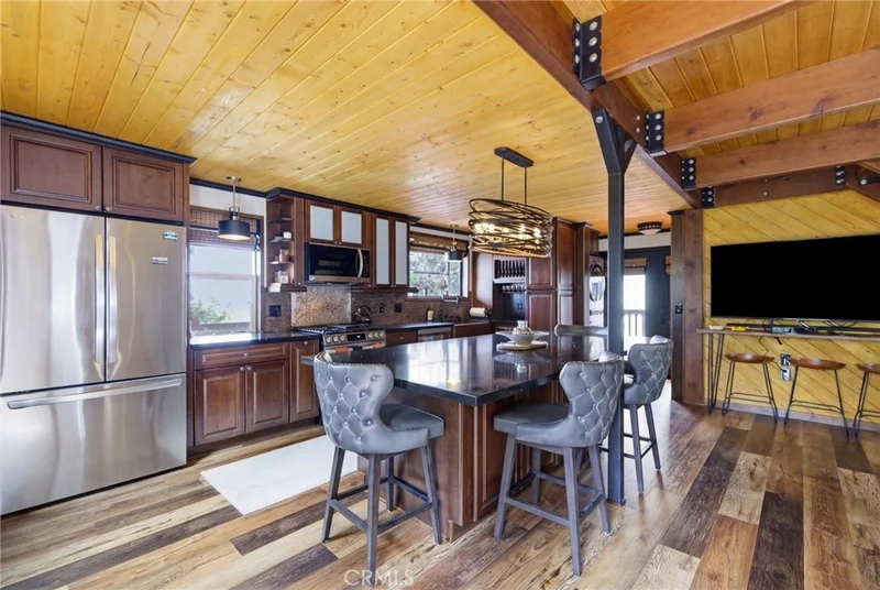 The Ultimate Modern-Rustic Retreat in Cedar Glen!! Experience the perfect harmony of vintage mountain charm and 21st-century luxury in this meticulously restored masterpiece. Originally erected in 1938, this home has undergone a massive, complete transformation that leaves no stone unturned. Situated on a premier corner lot bathed in natural light, the property features a rare mountain luxury: abundant street-level parking and a brand-new oversized carport. Step inside to a seamless interior featuring upgraded luxury vinyl flooring, stunning pine board ceilings, and synergistic wainscoting. The chef’s kitchen is a true showstopper, boasting custom cabinetry, sleek quartz countertops, a farmhouse copper sink, and a beautiful kitchen island. The main level flows into a spa-like bathroom complete with a two-person steam shower and electric heated floors, while the upstairs primary suite offers a new cedar walk-in closet and an oversized Juliet balcony with scenic views of Lake Arrowhead. Unique to this property is the intentional "Guest Stateroom" buildout, featuring a private half-bath with a barn door and a new kitchenette—the ideal setup for a private guest escape or high-end rental. Peace of mind comes standard with "over-built" infrastructure rarely found in the San Bernardino mountains. This retreat is prepared for every season with fireproof Rockwool insulation, shear walls, a radiant barrier foil, and a new 200 Amp service panel equipped with a Kohler generator and automatic transfer switch. High-capacity climate control is provided by a 36k multi-zone heat pump and a tankless water heater. The exterior is equally impressive, featuring a brand-new roof, energy-efficient vinyl windows, and a massive 900-square-foot wrap-around deck designed for entertaining against a backdrop of lake views. Every inch of the lot is thoughtfully curated with railroad tie fencing and terracing, offering a "new house" quality that is truly impossible to replicate.