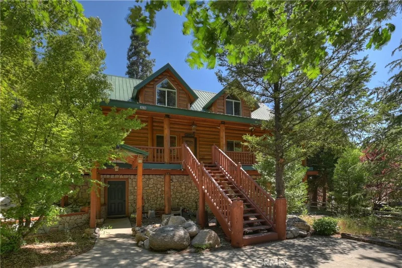 Take the charming bridge over the creek to get to this enchanting Lake Arrowhead real log home with level entry, offered fully furnished and ready for immediate enjoyment or as a perfect Airbnb investment property! Amazing location, perfectly nestled in a beautiful, park-like treed setting. From the moment you arrive, the inviting expansive front porch and wrap-around deck promise countless moments of relaxation and entertaining under the pines. Inside, you’ll be greeted by a warm and open living room featuring vaulted ceilings and a stunning wall of windows that seamlessly brings the breathtaking mountain surroundings indoors. A cozy fireplace, paired with the open-concept dining area and kitchen, creates the perfect space for gatherings, holidays, or tranquil evenings in. This spacious home offers four bedrooms and two full bathrooms, with two bedrooms and a full bath on the main level, two more bedrooms, a full bath, and a family room on the lower level, as well as a charming loft which can serve as a game room or fifth bedroom on the top floor—each room offering serene views of the surrounding forest. Tons of off-street parking and even additional room to store your boat or trailer. Located just minutes from all the year-round attractions and amenities of Lake Arrowhead, this home is a rare blend of rustic elegance and modern comfort. Whether you’re looking for a full-time residence, vacation getaway, or investment opportunity, this log cabin is truly a mountain escape worth discovering.