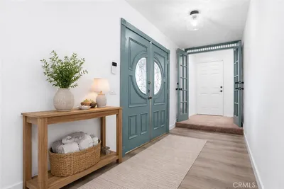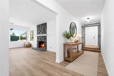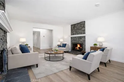 A rare opportunity in Cerritos, this expansive and recently renovated home is designed for multigenerational living or rental potential, offering 7 bedrooms, 4 full bathrooms, and approximately 3,556 square feet of living space on a private 8,139 sq ft lot. Thoughtfully designed with two distinct living wings and ADU potential, the layout offers flexibility for extended family, guests, or future income. The main level offers a spacious layout with soaring beamed ceilings, a gourmet kitchen with newly painted cabinetry, and both formal living and family rooms, each with its own fireplace. This wing includes four generously sized bedrooms, highlighted by a luxurious primary suite with vaulted ceilings, crown molding, an arched sitting area, walk-in closet, private fireplace, and a remodeled bathroom featuring a walk-in shower and new shaker-style vanity. An additional remodeled hall bathroom serves the remaining bedrooms. The upper-level living wing functions like a private apartment, featuring an open-concept kitchen that opens to a living room, three bedrooms including a primary suite with a resort-style bathroom complete with a soaking tub, dual sinks, and walk-in closet, a full hall bathroom, and a stackable washer and dryer. With both interior and exterior access, this space offers privacy and flexibility while remaining part of the main residence. Recent upgrades throughout both levels include new luxury vinyl plank flooring, new carpet, fresh interior paint and baseboards, updated panel doors and hardware, new closet doors, light fixtures, and ceiling fans. Additional improvements include newer windows, dual HVAC systems with newer thermostats, solar panels, a water softener, a new water pressure valve, upgraded copper supply lines, and built-in garage cabinetry. The backyard is designed for entertaining, featuring a covered outdoor pavilion with wood construction, brick columns, a shingle roof, and electrical, ideal for gatherings and outdoor dining. The property also offers block walls, brick and block planters, mature trees and shrubs, and a combination of brick and concrete hardscaping. The front yard features landscaped planters, brick and concrete walkways, an extra-wide driveway, wrought iron double-gate fencing, and RV parking. Ideally located within the highly regarded ABC Unified School District, the home is just minutes from parks, the Cerritos Millennium Library, Los Cerritos Center, shopping, dining, and convenient freeway access.
