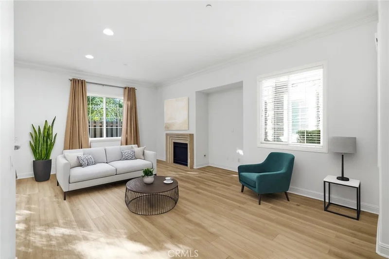 Experience sophisticated living in this exquisite Vistas@Indian Oaks end unit, built in 2011. This 3 Bedroom, 3 Bath, 1910 sqft townhome features, new wide-plank vinyl flooring throughout, freshly painted, crown molding, recessed lighting & only 1 shared wall. The gourmet chef’s kitchen is a culinary masterpiece, boasting KitchenAid stainless steel appliances, GE side by side refrigerator with ice & water dispenser. There is a high ceiling living room, with a cozy gas fireplace, which invites relaxation, while the luxurious primary suite offers mountain views and a gas fireplace. The primary bath has a soaking spa, separate shower, double sink, and a large closet. Enjoy effortless luxury with an upstairs laundry room along with plenty of cabinets. There are 2 more ample-sized bedrooms, more mountain views and a 2-car garage with independent doors. The back patio features pristine artificial turf for year-round enjoyment. Nestled within an elite gated community, residents enjoy amenities including a shimmering pool and spa with dramatic city-light views, also the security of earthquake insurance.. Ideally situated moments from hiking, 118 freeway, and close by is the upscale shopping & eating at The Vineyards at Porter Ranch, this home is a rare fusion of comfort and class.