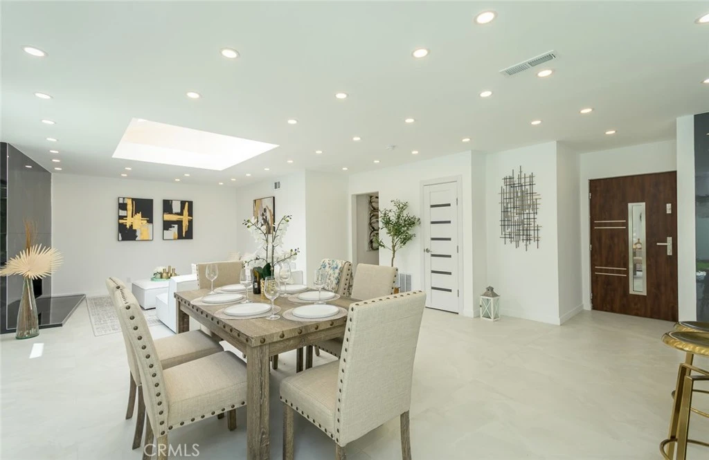 Beautifully reimagined modern home in the heart of Chatsworth, featuring clean lines, high-end finishes, and an exceptional open-concept layout. Step into a bright and expansive living space with soaring ceilings, elegant tray detail, and recessed lighting throughout. The seamless flow between the living, dining, and designer kitchen creates the perfect setting for both everyday living and entertaining. Spacious, light-filled bedrooms and thoughtfully updated bathrooms showcase contemporary style and comfort. A striking fireplace wall serves as a sophisticated focal point, while large windows and sliding doors invite natural light and connect to the private backyard. Located in a quiet neighborhood near parks, shopping, and dining, this turnkey home is move-in ready and designed for modern California living.