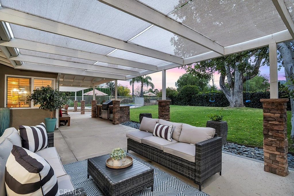 Located in the highly desirable Carriage Estates community west of Topanga, this exceptional single-story home offers the perfect blend of elevated everyday living and true entertainer’s appeal. Situated on a nearly half-acre, fully usable lot, properties like this...with space, privacy, and flexibility—rarely come to market. The home features a bright and open floor plan with soaring ceilings, abundant natural light, and hardwood flooring throughout. Thoughtfully upgraded with custom cabinetry throughout the home, including the kitchen, along with extensive storage and a striking double-sided fireplace, the residence blends warmth, functionality, and design. An integrated indoor and outdoor sound system enhances both daily living and entertaining. Designed with lifestyle in mind, the layout flows seamlessly to a private resort-style backyard featuring a gated pool and spa, an expansive covered patio spanning the entire rear of the home, and a built-in barbecue with refrigerator;ideal for hosting, outdoor dining, and enjoying warm California evenings under mature shade trees with stunning sunset views of the Chatsworth Hills. A true highlight of the property is the fully finished four-car garage, complete with high-quality built-in cabinetry. This versatile space offers incredible flexibility...perfect for a car enthusiast, workshop, home gym, creative studio, or additional lounge space. The spacious primary suite offers a large walk-in closet and a beautifully updated bathroom, while the additional bedrooms are generously sized and complemented by tastefully renovated bathrooms. Additional features include potential RV access and a setting that delivers both privacy and scenic beauty. Lovingly maintained and offered for the first time in over 20 years, this is a rare opportunity to own a standout home in one of Chatsworth’s most sought-after neighborhoods.