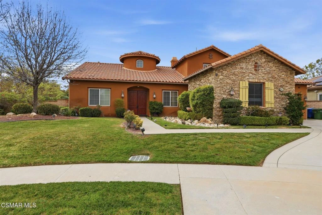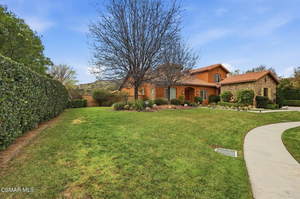 Set on a quiet cul-de-sac in Chatsworth, this exceptional property is designed for both everyday comfort and effortless entertaining, all framed by sweeping views of the Santa Susana Mountains and striking natural rock formations.The backyard feels like a private resort--featuring a pool with Baja shelf, spa, expansive lounging areas, a sports court, and multiple spaces to gather or unwind. A detached, open-concept casita with its own bath and closet offers flexibility for guests, work, or extended stays.Inside, the home welcomes you with a formal entry that opens to elegant living and dining spaces. The layout flows seamlessly into an oversized gourmet kitchen, thoughtfully connected by a butler's pantry and complemented by a generous walk-in pantry. The kitchen and adjoining family room overlook the backyard, creating a natural indoor-outdoor connection ideal for entertaining.The main level offers a spacious primary suite along with additional bedrooms and baths, while the upper level features private en-suite accommodations and a secondary living area--perfect for added comfort and separation of space.Additional highlights include dual garage configurations and a dedicated laundry room, all contributing to a home that balances functionality with refined living in one of Chatsworth's most desirable settings.