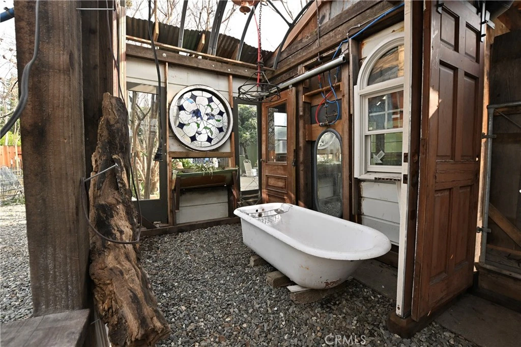 Charming oasis with abundant water features, garden beds, fruit trees, an artist’s studio, and even an outdoor claw-foot tub — a private retreat that invites creativity and relaxation. Inside, wood-look tile flows throughout, complemented by new ceiling fans in the bedrooms, a new hallway light, and a new glass kitchen door that seamlessly brings the outdoors in. The primary bath features a striking custom rock shower for a spa-like experience. Bright, airy, and thoughtfully updated, this home is a must-see to fully appreciate its character and serenity.