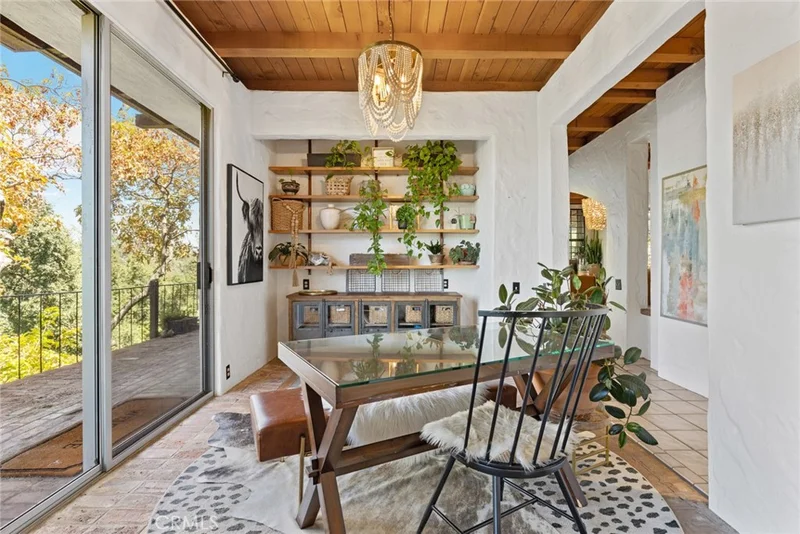 This one-of-a-kind property feels like a world of its own—peaceful, private, and just minutes from town. Set on 5.69 acres with approximately 600 feet of creek frontage along Butte Creek, it offers a rare mix of natural beauty, thoughtful design, and timeless character. A gated entrance leads to a circular drive, ornamental fountain, and tranquil koi pond that set the tone for what’s inside. The main home features five bedrooms and four bathrooms, with hand-carved wood doors, wood-beamed ceilings, architectural arches, and a blend of brick and tile flooring. The split floor plan includes built-ins throughout, multiple terraces, and large picture windows that frame views of the grounds, treetops, pool, and even the Sutter Buttes in the distance. Enjoy morning coffee or evening wine from one of the many balconies, where the sound of Butte Creek drifts through the trees. The pool and hot tub are tucked into beautifully landscaped surroundings, giving the outdoor space a garden-like feel. There's also a private beach area right on the creek—perfect for hosting or unwinding. The remodeled guest quarters now feature a full kitchen, full bathroom, living area, private entrance, and a fenced yard, offering complete flexibility for guests or extended stays. It also includes a loft, living area, and a wood-burning fireplace. Other highlights include a detached two-car garage, owned solar, pressure tank and generator for the well, a workshop area, fruit trees, a small orchard, and a protected wildlife preserve just across the creek that ensures privacy and open views for years to come. Originally built by Gene Henning, the home reflects craftsmanship and detail at every turn. Whether you're entertaining, relaxing, or simply enjoying the peaceful setting, this property offers the feeling of a private retreat—without giving up convenience.