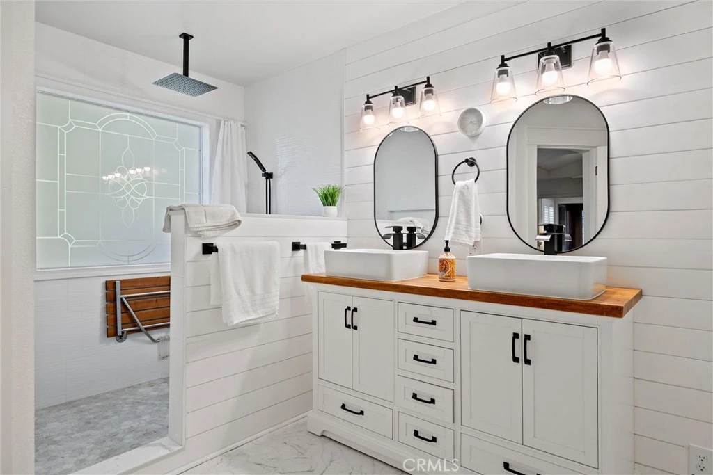 You will love this beautiful, updated home in Mission Ranch, a highly sought-after Santa Barbara-style community featuring a thoughtfully designed circular street seamlessly connecting the neighborhood. Sitting on a corner lot along the Lindo Channel's walking path, this property only has one shared neighbor/fence. The iron-gated front courtyard creates a secluded feel as you approach the home. It provides an additional charming spot to enjoy your morning coffee with its aged terracotta tile, wall fountain, & cafe table. Step inside & be immediately captivated by the home's most remarkable feature: extensive windows that frame the breathtaking beauty of the surrounding trees & gardens. Here you will find a split-level floor plan with the main living areas downstairs & 3 bedrooms upstairs. The large living room boasts two-story ceilings & windows beautifully shaded by magnificent oak trees. A separate dining room sits off the kitchen, where you also have a dining nook. The kitchen has been upgraded with soft-closing cabinet doors & drawers, quartz countertops, a modern backsplash, & reverse osmosis drinking water. The Samsung range & refrigerator are state-of-the-art Smart Appliances. You'll appreciate having remote control from your phone & their flexible functionality. The downstairs level also offers you a guest bath & laundry room. Upstairs, the primary suite is very spacious. It has room for a desk or sofa & lots of windows with treetop views. The primary bedroom's en-suite bath has been remodeled. It now features a spacious walk-in shower with a bench, a traditional wall showerhead, & a rain-style showerhead. The original out-sliding windows have been replaced with decorative, opaque single fixed panes for enhanced privacy & aesthetics. Additionally, a new door was installed to offer privacy from the bedroom. The additional two upstairs bedrooms share a hall bathroom with a full bathtub/shower. Now get this... all of the toilets are Smart! They offer various hygiene options & automatic features. Now step outside & let's tour the new upgrades in the backyard. The new decking has power & water for irrigation & lighting, making landscaping & maintenance easy. Additionally, the rear deck features a full patio roof, offering protection from the sun & shelter from rain. For added peace of mind, Ring Cameras are installed on the porch, driveway, & both sides of the deck. Please ask if you are interested in any of the house or outdoor furniture.