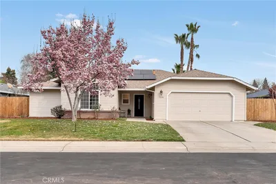 Beautifully upgraded 4-bedroom, 3-bath home built in 2021, close to Shasta Elementary, DeGarmo Park and the newly opened Beyond Golf, offering modern design with thoughtful, high-end finishes throughout. Since purchasing, the owner has enhanced the home with stylish laminate flooring, custom shiplap accents in the living room and kitchen, and upgraded lighting fixtures that elevate the overall aesthetic. Every detail has been considered—from matte black door handles and hinges for a sleek, cohesive look to a built-in floating entertainment center that adds both function and style. The laundry room has been improved with additional cabinetry, providing extra storage and convenience. Step outside to a thoughtfully designed backyard featuring a sprinkler system, planter boxes, and a privacy wall that creates a secluded outdoor retreat. The covered patio, complete with a motorized awning, extends your living space and truly feels like an additional room—perfect for relaxing or entertaining year-round. Additional features include an ADT alarm system for added peace of mind and pre-wiring in the garage for a future electric vehicle charger. This move-in ready home blends modern construction with custom upgrades, offering both comfort and style in every space.