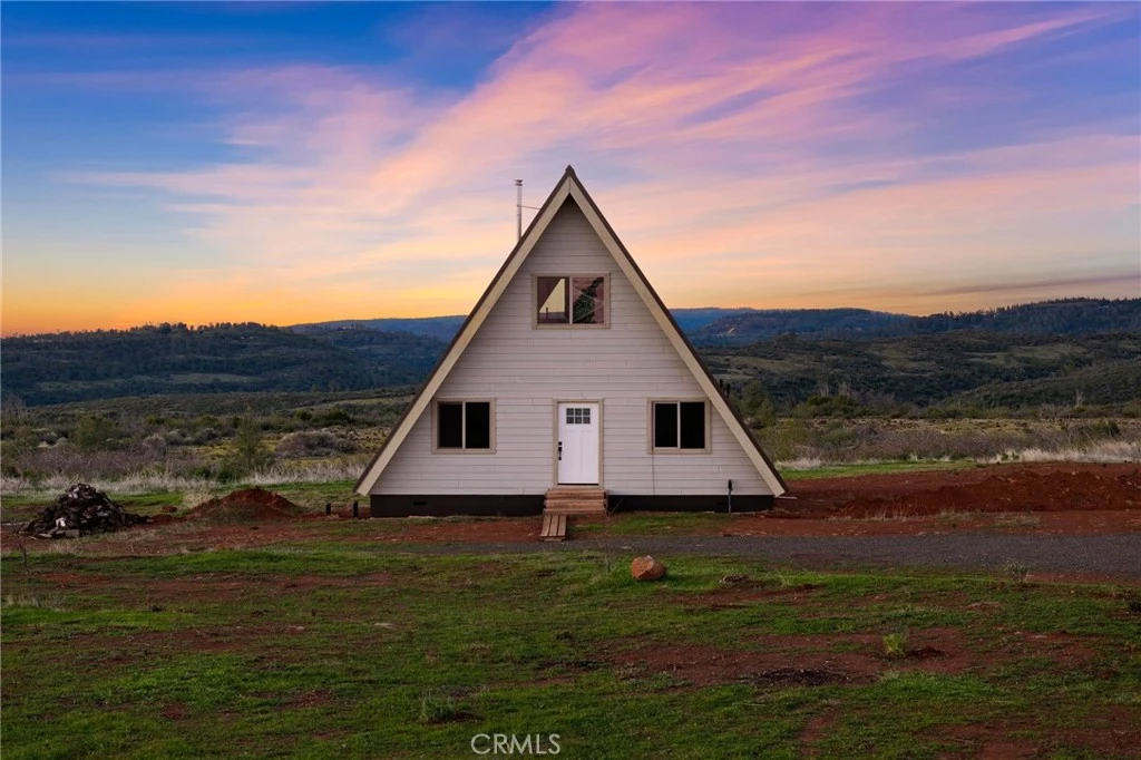 Welcome to 4614 Wilder Drive, a property filled with picturesque views and stunning sunsets located just 20 minutes from Chico! You will marvel at the scenic drive on your way to this darling half built A-frame beauty with 4 independent custom outbuildings where all your future custom home visions can come to life, all nestled against a million dollar view. On your way to this gorgeous property you will cross streams, cow pastures, and storybook landscapes that look otherworldly. When you pull up to the gravel driveway you will find a perfectly graded lot that leads to the home and several outbuildings bordering the property. The darling A-frame cabin itself boasts 1200 square feet of living space with plans for a 1 bed (with walk-in closet)/1 bath (with space for a stackable washer and dryer) tiny home with open concept kitchen, and a large loft. You will gasp when you see the floor to ceiling picture windows off the open concept kitchen, living area and loft with unobstructed views. The home is fully framed with a concrete foundation, new metal roof, new hardy back siding, new dual pane windows, and a wood burning stove for heat. The kitchen and bathrooms have all their plumbing infrastructure in place, but for needing the finishing touches. The property boasts a 1500 gallon, 2 chamber poly infiltrator septic that can support 4-5 bedrooms for expansion of the home or property. The community well professionally operated by Del Oro water is a prolific producer at 900 feet deep. Step into the fully enclosed, deer proofed garden and miniature orchard where 3 independent out buildings with power exists for comfortable living while your construction plans come to life. One outbuilding operates as a tiny bedroom with a tiny wood burning stove for heat. Another outbuilding is being used as a meal pre station. The third as a pottery making station with a kiln and storage. The fourth outbuilding is perfect for extra storage. These spaces are all tied together beautifully with stamped concrete patios and several custom pergolas. You will also find an enclosed bathing station that offers a clawfoot bath tub and stand up shower. Both with hot water from a propane water heater. Take a hot bath in the claw foot tub and look out onto the mini orchard and raised garden beds with the backdrop of raw wilderness. This property is truly a marvel to behold!
