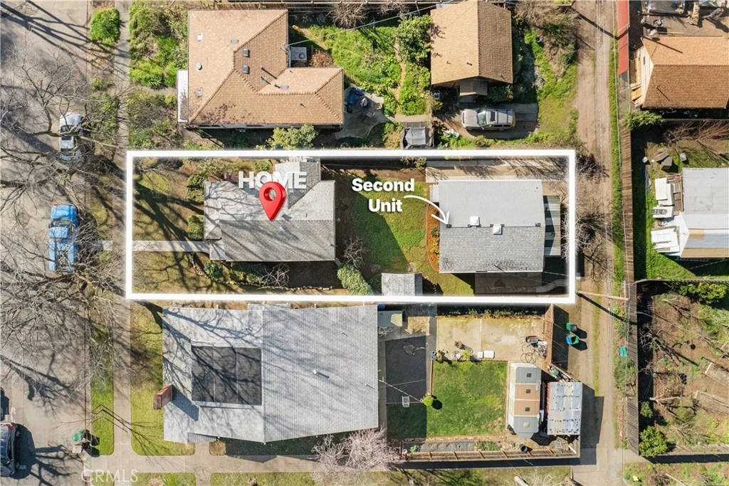 What a gem! Located in the heart of downtown Chico, this charming bungalow offers an incredible opportunity with two homes on one lot, just minutes from Bidwell Park, downtown markets and restaurants, and Chico State. The front home features 2 bedrooms and 1 bathroom and is filled with classic character. Wood flooring runs through most of the living spaces, complemented by beautiful wood-cased windows that keep the home light and bright. The cozy living room centers around a charming white rock fireplace—perfect for relaxing evenings. Just off the living room is an adorable, bright white kitchen with ample cabinet space and a sweet dining nook. A basement provides excellent additional storage. Between the two homes, you’ll find a spacious shared yard with a storage shed. The back unit is a darling 1 bedroom, 1 bathroom home with its own inviting front patio. Inside, natural light pours into the space, highlighting the high ceilings and a spacious living room complete with a charming window seat. The living area flows seamlessly into the kitchen, which features a large picture window and a peninsula countertop with seating. This unit has fresh white interior paint, dual-pane windows, private washer and dryer closet and its own private driveway with alley access. Whether you’re looking for a fantastic investment opportunity or a place to live in one unit and rent the other, this downtown Chico property offers flexibility, charm, and an unbeatable location.