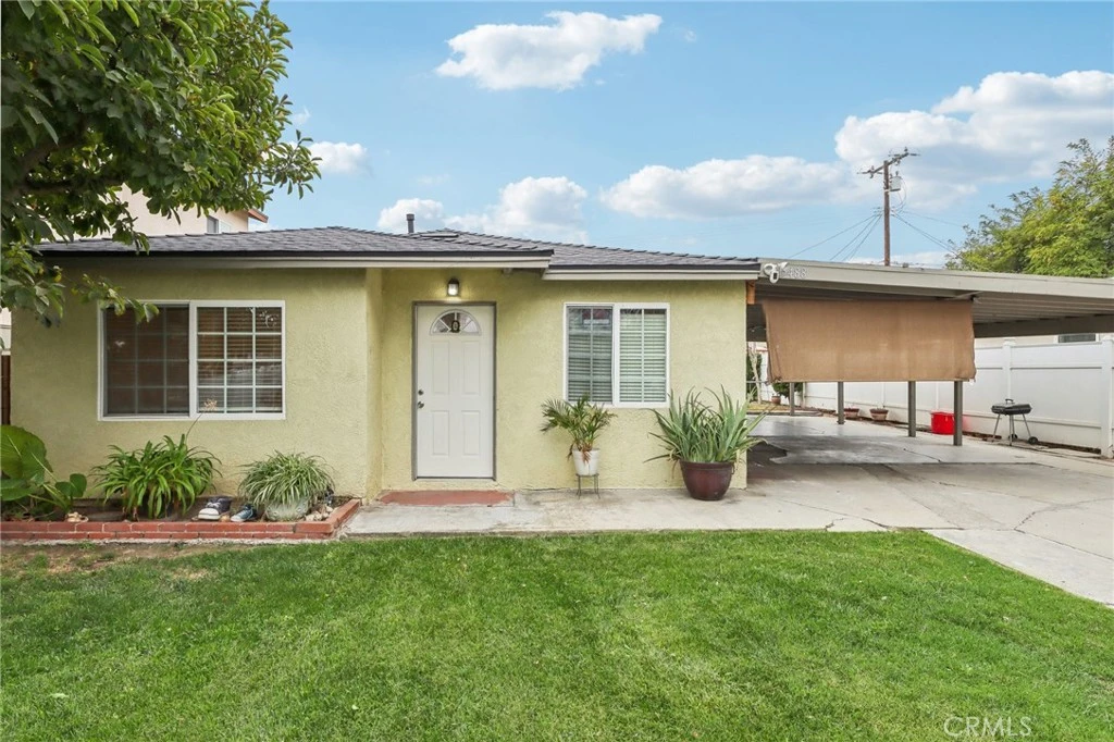 New Roof on Main Structure! This inviting home boasts a freshly painted interior, setting a warm and welcoming tone throughout. The renovated kitchen shines with sleek quartz countertops and modern cabinetry, providing ample space for meal preparation. Stylish laminate flooring and recessed lighting enhance the bright, airy feel of the living areas, while the updated bathroom offers contemporary finishes. Outside, a covered carport ensures convenient parking, and lush fruit trees—including apple, guava, lime, avocado, and mandarin—add a touch of natural beauty. The spacious lot offers extra room for expansion or a potential ADU. Ideally located near the newly constructed Los Serranos Park and award-winning Chaparral Elementary School, this property is just moments from Los Serranos Golf Course, shopping centers, and easy access to major freeways, offering both comfort and convenience.