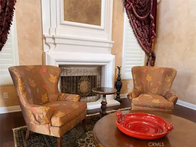 View! VIEW! VIEW! Spectacular 180-degree panoramic views of rolling hills, mountains, and city lights from this stunning luxury estate located in the prestigious gated Vellano community of Chino Hills. This impressive executive residence features 5 bedrooms and 5.5 bathrooms, including one bedroom suite downstairs, plus a private home office on the main level and a spacious upstairs entertainment/bonus room. A 4-car garage provides ample parking and storage. The home offers beautiful curb appeal with professionally landscaped grounds and a charming front courtyard fountain. Inside, the residence showcases an open floor plan with elegant wood flooring, soaring ceilings, and abundant natural light. The formal living room features a cozy fireplace, while the formal dining room boasts a dramatic two-story cathedral ceiling, creating an elegant space for entertaining. The gourmet chef’s kitchen is appointed with full slab granite countertops, a large center island with breakfast bar, white cabinetry, and premium stainless-steel appliances, including a Subzero built-in refrigerator, built-in microwave, double ovens, and a 6-burner cooktop with grill and professional hood. The sunny breakfast nook opens seamlessly to the spacious family room with fireplace and built-in entertainment center. Upstairs, all bedrooms enjoy beautiful view vistas. The luxurious primary suite features a private balcony overlooking the panoramic scenery. The spa-inspired primary bathroom offers dual vanities, a separate soaking tub, and a walk-in shower. Additional upgrades include custom window coverings, crown moldings, recessed lighting, designer chandeliers, ceiling fans, and custom two-tone paint. The professionally landscaped backyard is designed for outdoor entertaining with a built-in BBQ island, patio deck, and breathtaking panoramic views. Located in the highly sought-after Vellano gated community, offering privacy, prestige, and one of the best view locations in Chino Hills.