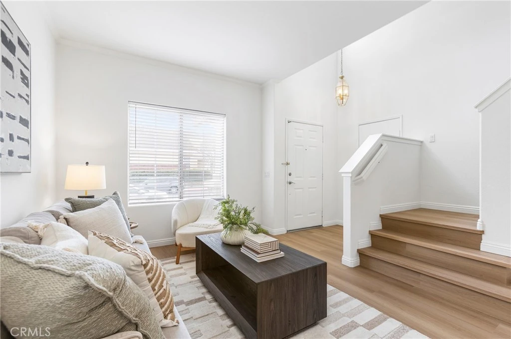 Located within an exclusive gated community in Chino Hills, this three-bedroom, 2.5-bath residence offers 1,923 square feet of thoughtfully designed living space, including a versatile main-level den. One of the rare units that includes a drive way for additional parking. Brand new luxury vinyl plank flooring adorn the freshly painted home. The the open style kitchen includes NEW stainless steel appliances, sample storage space, and stone countertops. Large windows with northern exposure fill the family room and kitchen with plenty of natural light. Another unique opportunity in the community with the *spacious* back yard. Upstairs, a loft leads to the primary suite, which offers a sitting/office area, walk-in closet, and en-suite bath. Two additional sizable bedrooms complete the upper level. Highly rated schools with a shopping center, parks, and hiking trails nearby. Convenient to the 60, 71, and 91 freeways. Newer AC condenser. The community includes a security gate for entry, playground, pool, and visitor parking. HOA maintains front gardening.