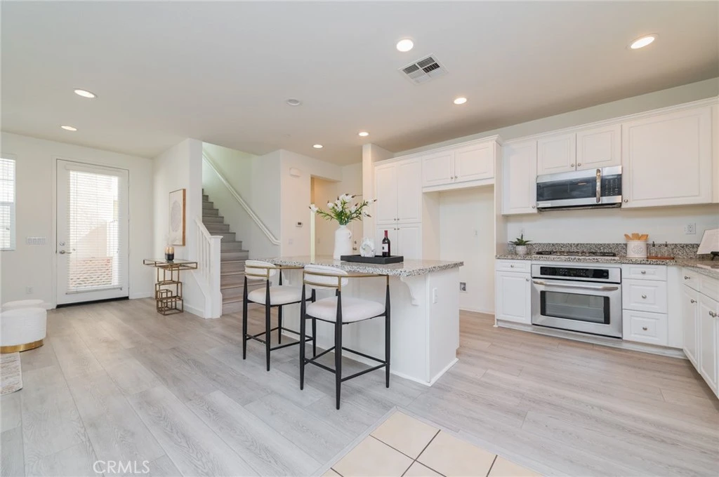 Motivated seller with big price reduction. Gorgeous Single Family Home built by DR Horton is located at Montecito Place community in Chino. Open floor plan. Features 4 bedroom and 3 bath with 2034 sq.ft. Downstairs with 1 bedroom and 1 bath. Spacious living room, formal dining, Gourmet open kitchen features granite center Island countertops, stainless steel appliances, cabinet, and Pantry. Open and Airy. The sliding door to the private patio which is great for BBQ'S. Wood flooring. New interior paint. The stairway leads you upstairs to the master suite with its own bathroom, dual sinks, separate shower, huge walk-in closet and a treat. Another 2 bedrooms with 1 full bath. Individual Laundry room. Central A/C unit. Community offers a sparkling swimming pool, SPA, and BBQ area **Low HOA fee and low property tax, and NO Mello-Roos tax** Close to freeway 10, 60, 71 and Chino town square. Convenience located close to Restaurants, Market, Bus Stop, and shopping Center. EZ access to 60 freeway.