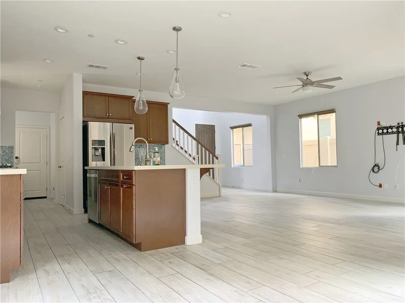 Welcome to this beautifully upgraded Cal Atlantic residence featuring over $65,000 in high-quality upgrades. Filled with natural light, the home showcases a dramatic vaulted entry with a modern chandelier and an open, airy layout. The main level features upgraded plank-style tile flooring and an open-concept design connecting the kitchen, dining, and living areas — ideal for both daily living and entertaining. The chef’s kitchen offers a spacious island, stainless farmhouse sink, quartz countertops, Whirlpool stainless appliances, a striking blue herringbone backsplash, dark wood cabinetry, walk-in pantry, and stylish pendant lighting. Upstairs, tile flooring continues throughout. The luxurious primary suite includes a walk-in closet with custom built-ins and a spa-inspired bath featuring dual vanities, a soaking tub, and a rain shower with glass enclosure. A versatile loft (convertible to a bedroom), two additional bedrooms with great natural light, and a dual-sink guest bath complete the upper level. The low-maintenance backyard features vinyl fencing, artificial turf, and a decorative water feature. The upgraded garage includes epoxy flooring, a tankless water heater, two EV chargers, and a LifeSource whole-house water system. Leased solar panels enhance the home’s energy efficiency. Located in the Preserve HOA, residents enjoy walking trails, parks, a clubhouse, playgrounds, courts, dog parks, and pool and spa amenities. A truly turnkey home combining modern upgrades and resort-style community living.