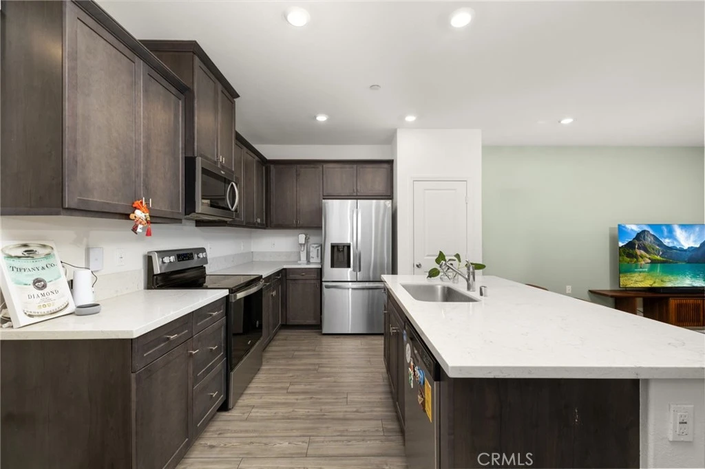 Welcome to 16181 E. Preserve Loop, a beautiful well-maintained detached condo in the highly desirable Monet community at the Preserve Community of Chino. This bright and open floor plan offers comfortable living with a spacious layout ideal for everyday living and entertaining. The floor plan offers a great open 1,820 sq/ft floor plan with 9-ft celling. Four-bedroom home offers a thoughtfully designed living space. Rate for its size, the four-bedroom configuration provides flexibility not commonly found in comparable homes. The first-floor features upgraded wood flooring, and the kitchen pairs quartz countertops with modern dark cabinetry for a clean, contemporary finish. Bathrooms on the second floor include dual sinks for added convenience. Outdoors, a covered patio and fully finished backyard create a polished and private setting. The home also includes fully paid solar panels and a 240V EV charging outlet. Residents enjoy resort-style community amenities including a pool and spa, clubhouse and meeting center, pickleball court, BBQ and picnic area, and multiple neighborhood parks.