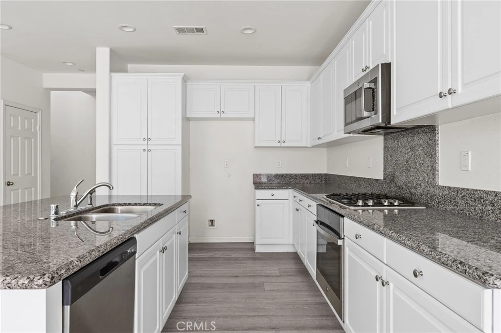 Welcome to this beautifully upgraded 4-bedroom, 3-bathroom single family house located in the desirable Preserve Community in city of Chino. Nestled on a premium lot at a quiet end corner, the home features a beautifully landscaped backyard, complete with a custom built concrete planter box and low maintenance artificial grass. As you step inside, you’ll be greeted by an open floor plan that includes a spacious great room—combining a large family room, dining area, and kitchen accentuated by a striking vaulted ceiling. The convenience of a main level bedroom and bath adds to the appeal. The home includes many features and some upgrades, such as wood laminate floors, premium whole house cabinets with soft closure feature, upgraded double mount kitchen sinks , extra windows in the dining area, master suite, and great room, plantation shutters, vaulted 8-foot doors, and a handy garage service door. You’ll also appreciate the abundant recessed lighting throughout. The gourmet kitchen is a chef’s dream, featuring high end appliances, a composite barn sink and elegant natural stone countertops on a generously sized island. Heading upstairs, you’ll find a roomy loft ideal for family entertainment, the master bedroom suite, and two additional spacious bedrooms. The community offers fantastic amenities, including a swimming pool, tennis courts, a children’s play area, a 24 hour fitness center, and basketball courts. The clubhouse is a highlight, boasting a movie theater, business center, library, and versatile event space. Situated conveniently close to new shopping centers and within walking distance to two elementary schools (Cal Aero and Legacy Academy) as well as the sought-after Chino Hills High School, this home also comes with leased solar panels to help keep your summer electricity costs down.This is a rare opportunity to own a modern, upgraded home in one of the area’s most desirable communities.