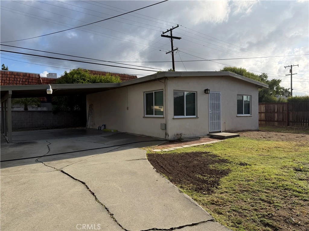 Newly renovated back house available for rent on a shared lot with two homes. This private 2-bedroom, 1-bath unit has been fully updated with modern finishes throughout. The home features a spacious kitchen with brand-new cabinets, countertops, stove, refrigerator, sink, disposal, and faucet—perfect for everyday cooking and entertaining. The bright living room offers recessed lighting and a ceiling fan for added comfort. Both bedrooms include ceiling fans and new blinds, while the entire home is finished with new laminate flooring and dual-pane windows for energy efficiency. The bathroom has been completely remodeled with a new tub/shower, toilet, vanity, fixtures, and lighting—everything is brand new. Additional amenities include washer and dryer hookups ready for a stackable unit, a carport with space for two vehicles, and water and trash services included in the rent. A clean, modern, and move-in-ready home—ideal for comfortable living.