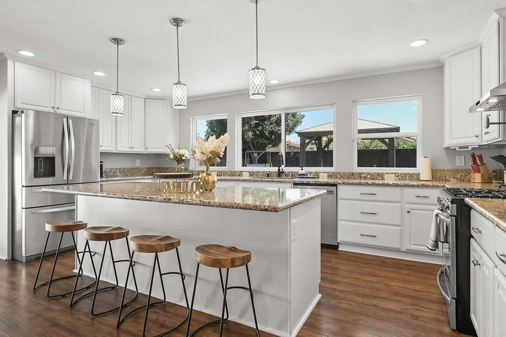 Welcome to your dream home in the highly desirable Rancho Del Rey Community! This beautifully upgraded 5-bedroom, 3-bath residence offers the perfect blend of comfort, style, and convenience. Step inside to discover a stunning, fully remodeled kitchen—the true heart of the home—featuring a massive island, modern finishes, and ample space for entertaining family and friends. The open-concept layout flows seamlessly into the dining and living areas, creating a bright and inviting atmosphere. With two bedrooms and a full bath on the first level, this home is ideal for multi-generational living, guests, or a private home office setup. Enjoy outdoor living at its finest in the immaculate, low-maintenance backyard designed like your own private park. Relax under the charming gazebo, entertain on elegant pavers, and enjoy year-round greenery with turf landscaping. Spacious 2-car attached garage, Two oversized storage sheds—perfect for all your storage needs. Located in a quiet, family-friendly neighborhood & close proximity to top-rated schools, parks, walking trails, shopping, and easy freeway access This move-in ready home truly has it all—style, space, and an unbeatable location. Don’t miss this opportunity—schedule your private showing today before it’gone!