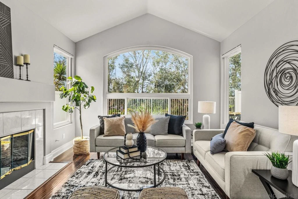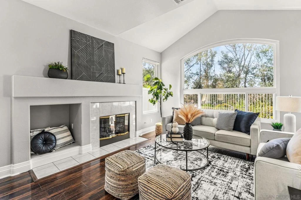Move-in ready and beautifully refreshed, this two-story Terra Nova townhome lives like a single family home with attached private garage and only one shared wall. Fresh paint, central A/C, and wood-laminate flooring throughout create a clean, modern feel, while vaulted ceilings and abundant natural light enhance the open, airy layout. The well-appointed eat-in kitchen features granite countertops, crisp white cabinetry, and ample storage, flowing seamlessly into the living space highlighted by a cozy fireplace. A downstairs bedroom and full bathroom provide flexibility for guests or a home office. Upstairs, the spacious primary suite offers a relaxing retreat with a walk-in closet and en-suite bath. Step outside to a private, low-maintenance backyard—perfect for enjoying indoor-outdoor living with minimal upkeep. Additional features include a supplementary assigned parking space, ample guest parking, and convenient in-unit laundry room. Residents of Terra Nova enjoy access to community amenities including a pool and playground, all in a well-maintained neighborhood close to everyday essentials. Steps from the shops, dining, and amenities of Terra Nova Plaza, and easy access to the 805 freeway.