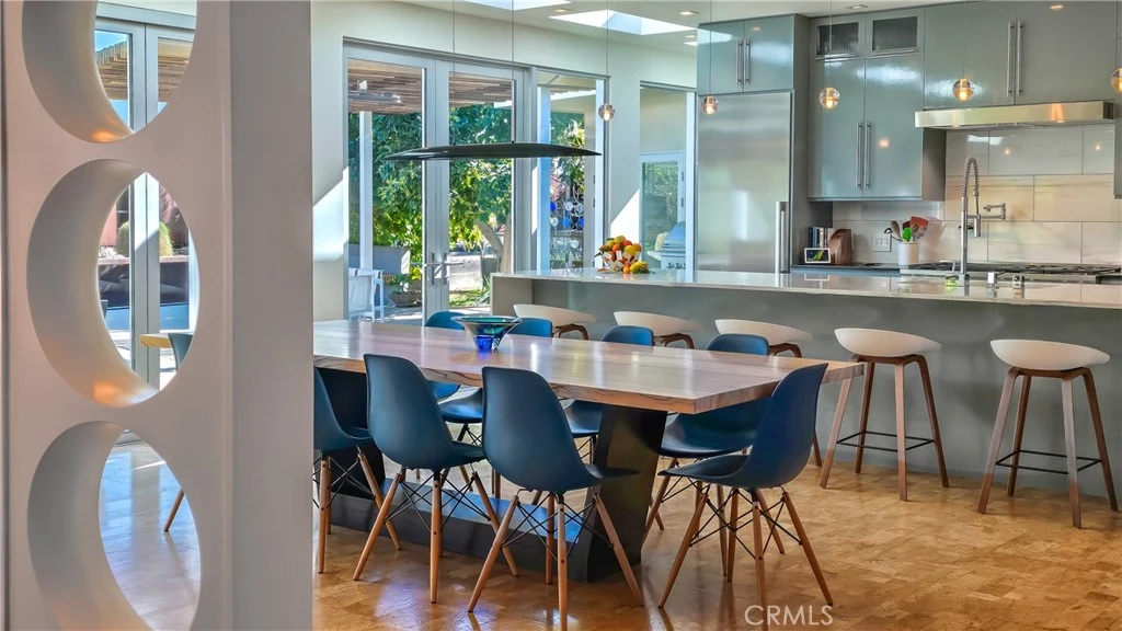 D.W. Henderson Mid-Century built in 1966, Reimagined in 2016 remodel by local design/build Lotus Construction Group. Clean lines, bold colors, geometric shapes, walls of glass, metal and wood are elements used in the redesign of this exceptional residence. Open wood fencing and a bubbling fountain in the front courtyard create a welcoming entrance into the home. Use of cork, wood and tile flooring. A step-down living room showcases a fireplace with raised hearth and a wine closet ideal for the connoisseur. The gourmet kitchen features Miele appliances, waterfall quartz counters, ample storage, breakfast bar and large walk-in pantry. A spacious dining area has a custom designed decorative wall as the backdrop between the common areas. Floor-to-ceiling glass walls open to the patio, sparkling pool with waterfall feature and firepit. Lush foliage to be enjoyed from every vantage point. The primary bedroom provides a private retreat featuring an en-suite bath with a walk-in shower and spacious closet, built-in bookcase and desk, with glass doors opening to a covered patio overlooking the rose garden. On the opposite end of the home is a hallway leading to a full bath and two bedrooms, with energy efficient mini-split heating and cooling systems. Bedroom currently used as office/den has glass doors opening to the back yard with mature citrus (blood orange, lemon, grapefruit and kumquat) and fruit (avocado and pomegranate) trees. Raised bed gardens are ready and waiting for your attention. The laundry room off the kitchen as an abundance of storage and counter space with Miele washer and dryer included. The direct access oversized two-car garage has floor-to-ceiling storage cabinets, refrigerator and electric car charger. Drought tolerant landscaping and paid solar panels provide sustainability, savings and comfort. Located in a lovely neighborhood north of Baseline, and east of Indian Hill with views of the local foothills and mountain range, near the hike/bike Thompson Creek Trail, Claremont Wilderness Park and La Puerta Sports Park. Enjoy the California Botanic Garden, Sunday Farmer’s Market, local eateries, coffee houses, art galleries, museums, restaurants and boutiques in the Village. Near prestigious Claremont schools, Claremont Colleges, with convenient access to freeway systems, Claremont Depot & Metrolink. Live the life you have imagined, live the life you deserve!