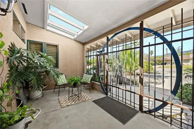 Cool contemporary on a quiet street of custom homes in NW Claremont with foothill views. Zen inspired front yard landscape design features waterwise plantings with a flowing dry river accent for maximum curb appeal. A gated front entry vestibule opens to the interior. The free-flowing floor plan of this distinctive property offers many creative spaces to live in and entertain with style. The living room features a skylight and calming water wall to enjoy as you relax at the end of the day. Bright and open island kitchen boasts an abundance of storage and newer appliances including a Wolf BBQ indoor grill. Adjoining gathering and dining room has vaulted ceilings, built in cabinetry and French doors. All living areas have hard surface flooring including gorgeous solid wood Brazilian walnut. The front bedroom was previously two rooms and offers a perfect kids space or spacious home office. Primary suite has a walk-in shower with dual showerheads and opens to the sunroom. The versatile split wing floor plan features the third bedroom suite on the opposite side of the home, offering privacy and separation for extended family or guests. A sun filled enclosed patio is the ideal spot to sip a cool beverage and chill. Plant lovers will find plenty of spots for their leafy friends to thrive and grow. This room offers recessed lighting, stamped concrete floors and Larson patio windows with retractable screens for all season comfort. The north-facing enclosed porch with foothill views provides a creative space for your hobbies or Harleys. Designed especially for cycles of all sizes, this room features a roll up door which opens to the driveway for easy access. Slate floors, skylight and a temperature-controlled environment amp up appeal. The large 1/3-acre lot offers a low maintenance back yard with multiple patio areas to enjoy and entertain. Do you need extra parking? A long concrete driveway leads to an electronic solid gate which opens to the two-car detached garage and side access parking perfect for boat or RV. The home was upgraded with energy efficient Milgard ultra windows, and has a brand-new composition shingle roof. This property is within walking distance to Sumner Danbury elementary school, a California Distinguished School within the acclaimed Claremont school district. Foothill hiking and biking trails are close by. A rare find!