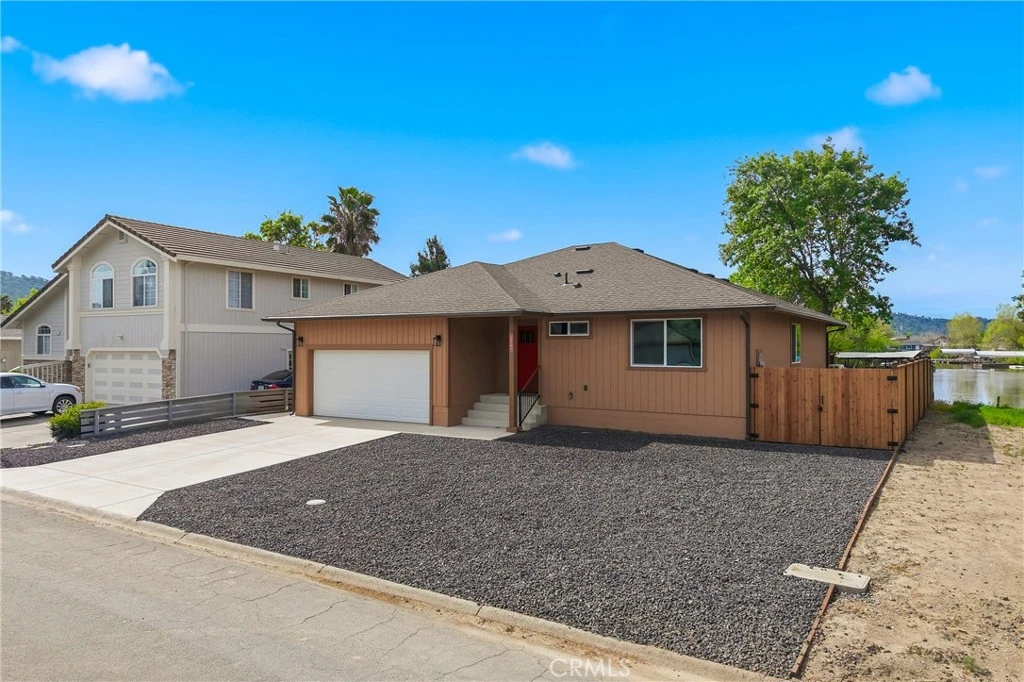 Brand New Custom Home in the Heart of Clearlake Keys with direct access to Clear Lake — California's largest natural lake and one of the nation's premier bass fishing destinations. Welcome to this stunning new construction home nestled in the sought-after Clearlake Keys community. This single-story, 3-bedroom, 2-bathroom Craftsman-style home offers 1,448 sqft of thoughtfully designed living space. Custom built to California's 2022 Energy Code standards and fully CHEERS Registry certified, with every system independently verified and compliant. This home is built for efficiency from the ground up. The CHEERS-verified green package includes owned solar (photovoltaic system), a high-SEER/EER multi-speed heat pump HVAC, energy-efficient heat pump water heater, certified insulation, ENERGY STAR windows and doors, mechanical ventilation, and LED lighting throughout — delivering lower utility bills and long-term peace of mind. The attached 2-car garage is EV-charge ready, and a whole-home fire sprinkler system adds an extra layer of safety. Step inside to an open floor plan featuring recessed LED lighting, and beautiful kitchen with quartz countertops, center island, self-closing cabinetry, and stainless steel ENERGY STAR appliances. The primary suite includes a walk-in closet and private bath, while all bedrooms are conveniently located on the main level — perfect for effortless single-story living. The yard opens to water views. The home sits on a navigable canal. Whether you're launching a boat, casting a line from your backyard, or simply unwinding on the patio at sunset, the lifestyle here is unmatched. Explore nearby wineries, parks, and casinos, or simply slow down and soak it all in. Move-in ready and fully code-compliant. This is the rare waterfront home that delivers both lifestyle and lasting value.