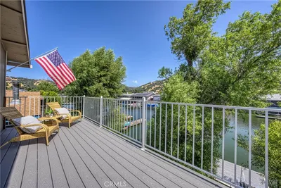 At the end of a peaceful cul-de-sac, this inviting 2-bedroom, 2-bathroom Clearlake Keys home offers both comfort and functionality. The interiors boast brand-new flooring throughout and fresh paint. Inside, you'll find a generous living room that seamlessly connects to a dining area. The efficient galley kitchen is designed with plenty of counter space for preparing favorite meals. Step outside onto the recently updated deck, perfect for entertaining guests or relaxing with morning coffee as you take in channel views and abundant lake wildlife. The covered deck overlooks the tranquil channel, offering a peaceful retreat and easy access via gangplank to your private dock and boat slip. Access to Clear Lake via the channel. Amenities abound, including convenient RV or boat parking and a spacious two-car garage with driveway. The garage features washer-dryer hookups, laundry sink, workbench, and cabinets. Outdoor spaces feature a fenced backyard equipped with an irrigation system. Two storage sheds provide extra room for tools, gardening equipment, or seasonal items. Whether you're looking for a getaway or an everyday home, this property promises versatility and an ideal lakeside lifestyle.