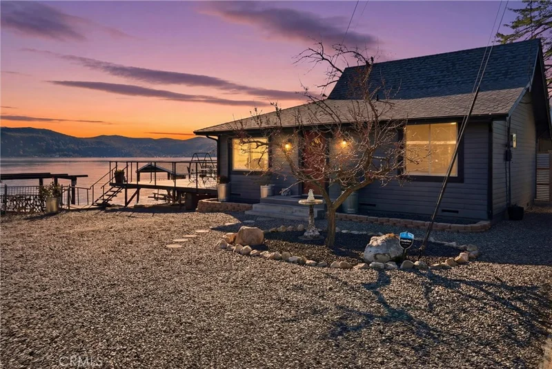 TURN-KEY lakefront getaway awaits with stunning panoramic lake views nestled on the shores of Clearlake. Enjoy fishing off your private, steel framed dock and pier or soak in the morning sunshine on the spacious Trex deck out front. Perfect for an Airbnb, this home is fully electric and the epitome of low-maintenance living! Recently remodeled into a 1 bed/2 bath home, creating a more functional design and optimizing the space and views. The kitchen features granite countertops with ample space and storage for your cooking needs matched with picturesque views as you entertain. The property is fully fenced with security gate access with plenty of room for parking for your vehicles, boat, and/or RV. Located less than a 10 min drive from the nearest boat launch and amenities blending a waterfront retreat with everyday convenience; you can begin your escape to peaceful living at 13379 Lakeshore Drive.