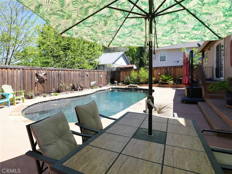 The term "Staycation" comes to mind when you walk into the back yard of this amazing home. It has the feel of a resort with the comfort of a family home. The in-ground pool is just one of the many incredible features of this 3 bedroom, 2 bathroom slice of paradise. Let's start from the roof and work our way down. The home is powered by fully owned solar panels. The roof itself is in excellent shape. The paint on the home looks sharp and crisp. The fencing surround the property is new and provides ample privacy. The backyard has a gazebo, a hot tub, storage sheds and paved walk-ways making it very easy to maintain and enjoy. The front yard is well manicured giving a sense of pride in the neighborhood. You have a driveway with plenty of parking and RV hook-ups. Inside you are treated to a nice open floor plan. A kitchen with plenty of counter and cabinet space and far far more!