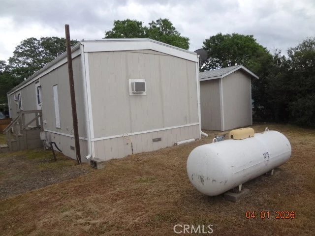 This 1982 single wide has 2 bedrooms, 1 bath; covered entry deck; kitchen has electric stove with hood; propane forced air heat with wall air conditioning; storage shed in rear yard