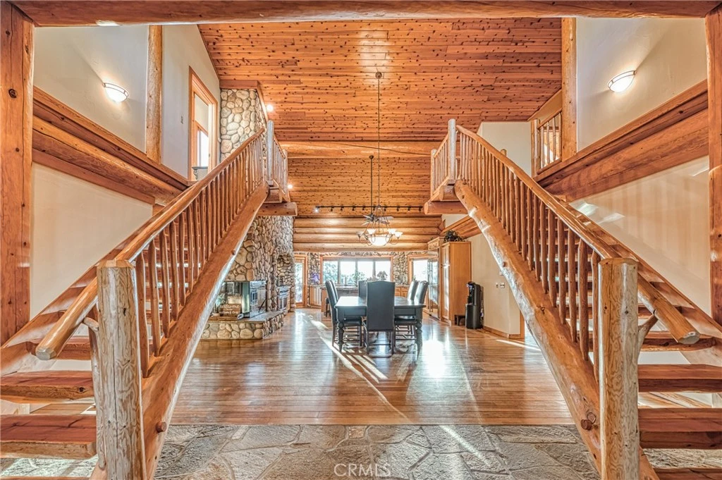 An extraordinary 40+/- ac ranch retreat where Canadian Blue Spruce log construction meets timeless craftsmanship and modern comfort. Tucked inside a private, gated community just 25 minutes from Clovis, this one-of-a-kind estate offers the rare opportunity to live on land without sacrificing luxury. The main residence spans over 4,200 sq. ft., featuring 5 spacious bedrooms and 4.5 baths, plus a detached ADU above the oversized 4-car garage perfect for multigenerational living or guest stays. Soaring wood-beamed ceilings, river rock fireplaces, and handcrafted details throughout evoke the warmth of a mountain lodge. Outdoors, a fully stocked fishing pond, fenced garden with raised beds, and covered livestock barn make this a true rancher's paradise. An inground spa and stone patio with a built-in outdoor kitchen and fire pit invite you to entertain under the stars. With panoramic views of Table Mountain and endless room to roam whether horseback riding, off-roading, or simply enjoying the sunset this property is ideal for hobby ranchers, outdoor enthusiasts, or anyone seeking a peaceful, self-sustaining lifestyle surrounded by natural beauty.