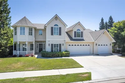 An exceptional opportunity to own a private estate on 9.44 acres in one of Clovis' most coveted locations, just north of Copper Avenue and within the prestigious Clovis North School District. This beautifully maintained 3,231 sq ft residence offers 5 bedrooms and 3 bathrooms, including a thoughtfully designed guest suite ideal for multi-generational living or hosting in comfort and style. A gated entrance opens to a stunning, tree-lined drive that sets the tone for the property's sense of arrival, leading to a spacious 3-car garage and an expansive circular driveway with ample guest parking. The grounds are both functional and picturesque, featuring three water wells (two active), a newer septic system (less than 5 years old, meticulously maintained), and 22 owned solar panels providing long-term efficiency and value. Designed for both resilience and convenience, the property includes a Generac backup generator with its own dedicated LP tank, along with a separate LP tank servicing the home. The residence has been impeccably cared for, offering timeless quality and a strong foundation for future customization or enhancement. Surrounding the home is a serene, park-like setting with mature eucalyptus and an impressive collection of fruit-bearing trees, including persimmon, fig, citrus, cherry, pomegranate, and olive, creating a tranquil retreat with endless potential. Not located in a California High or Very High Fire Severity Zone or FEMA Flood Zone, offering an added layer of confidence and peace of mind. A rare blend of privacy, acreage, and prestige, this is refined country living at its finest in the heart of Clovis.