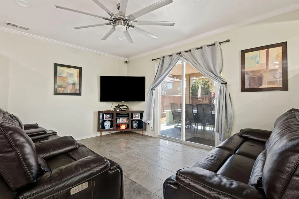 Two-story home offering 5 bedrooms and 3 bathrooms with no HOA. The open floorplan provides abundant natural light and comfortable living spaces ideal for both everyday living and entertaining. The kitchen overlooks the main living area and features stainless steel appliances and a center island. A spacious game room with a pool table adds additional space for recreation or gatherings. All bedrooms are generously sized, and the bathrooms include modern amenities. The backyard features an Alumawood covered patio, creating a great space for outdoor dining, relaxing, or entertaining. Schedule your tour today to see all this home has to offer.
