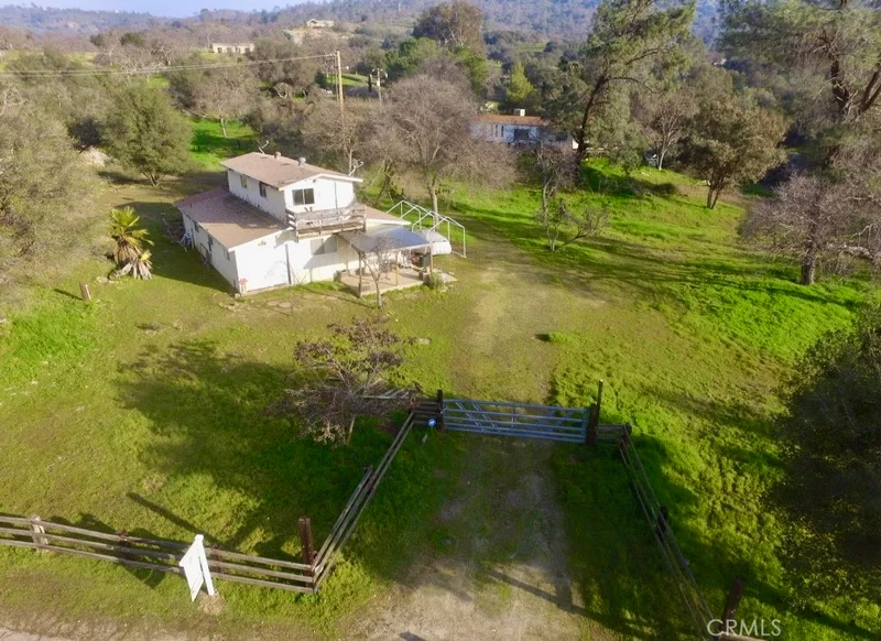 Welcome to 3.1 flat, usable acres with full utilities, tucked away in a peaceful, private area of Coarsegold. This ready-to-go property features a permitted detached garage and storage structure (“the barn”) that has been converted into living space. With your hammer, nails and imagination, it offers exciting potential. Whether for a short-term rental, extended family accommodations, or a flexible guest setup, the possibilities are endless. At the top of the property, you’ll find a graded building pad with utilities in place, ideal for a barn, workshop, or shed. The existing 1,400 sq. ft. manufactured home is considered personal property, and the buyer may choose to remove or repair it at their discretion—making this a versatile opportunity to customize and create your ideal rural retreat.