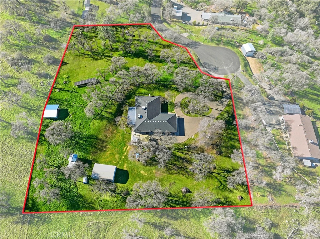 This is a must see! This custom-built home on 2.5 acres tucked into the Sierra Nevada foothills offers peace and quiet at the end of a cul-de-sac. As you step foot into this lovely home, you will notice how open yet cozy it is. The Brazilian acacia flooring and the German Beechwood kitchen cabinets, linen cabinets and den bookcase lends a polished and warm feel to the home. The kitchen features granite countertops, recessed lighting, tray ceiling and walk in pantry. The master suite is roomy and comfortable with French doors leading out to a gazebo covered patio and a large hot tub. The other 2 bedrooms are en suites with both having their own full bathroom. The bonus room features barn doors for privacy and can be used as an office, den, work out space or an extra bedroom. To add to all these amazing features, the home also boasts a covered back patio, a large shop, a pole barn and sheds to store your extra items. To top it off the home also offers owned solar and 2 year Roof Certification! This one won't last long! Make your appointment today!