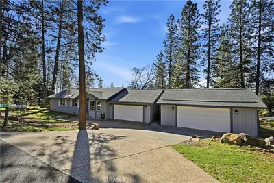 Perched above the lush fairways of Adams Springs Golf Course, this beautifully maintained 4-bedroom +Bonus room, 3-bath home offers breathtaking views of the surrounding forest and majestic Mt. Hannah from nearly every window. Located on a quiet cul-de-sac with only two homes, this property provides an exceptional sense of privacy, serenity, and natural beauty. Spanning 2,306 sq ft, the home features a thoughtful layout designed for both comfortable living and entertaining. The main level welcomes you with a bright living room showcasing hardwood floors, vaulted ceilings, picture windows, and a cozy wood stove for chilly mountain evenings. The kitchen is well-appointed with maple cabinetry, stainless steel appliances, granite countertops, two pantries, and a separate laundry room. Just off the dining room and primary suite, step onto the expansive redwood deck that spans the entire back of the home, perfect for relaxing, entertaining, and soaking in the peaceful scenery. The primary suite features a tray ceiling, an ensuite bath with dual vanities and a large soaking tub with tile surround, and private access to the deck. Two additional bedrooms and a full bathroom are also located on the main level. Downstairs offers wonderful flexibility with a spacious family room, guest suite, full bathroom, and a private office, creating an ideal setup for multi-generational living, guest accommodations, a home office, or creative studio space. The outdoor spaces are equally inviting. The 0.66-acre lot features low-maintenance native landscaping and raised garden beds on drip irrigation, along with a fenced dog run and bocce ball court for outdoor enjoyment. A wide driveway with level access and ample parking adds convenience, while the property backs to nature and open greenspace, enhancing the peaceful setting. First time on the market, this special property offers privacy, beautiful surroundings, and flexible living space, an exceptional opportunity to enjoy the best of mountain living.