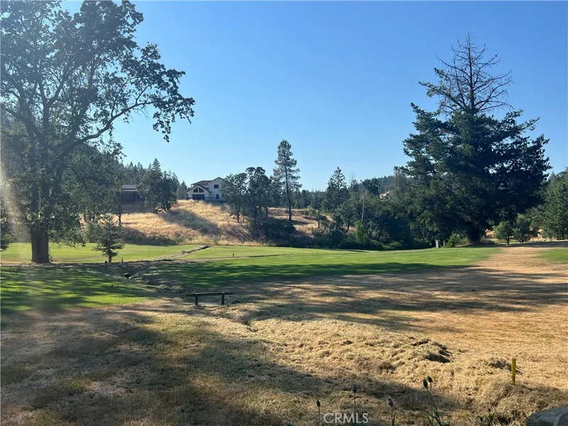 IDYLLIC GOLF COURSE FRONTAGE LOT with green views all year round. The driveway takes you down to a large level area with a gazebo by a little winter pond and an open carport, where you can build a home and take advantage of golf course views. Good soils analysis for a standard septic system. Utilities are underground so no wires in the view and greater fire safety. Water available at the street.