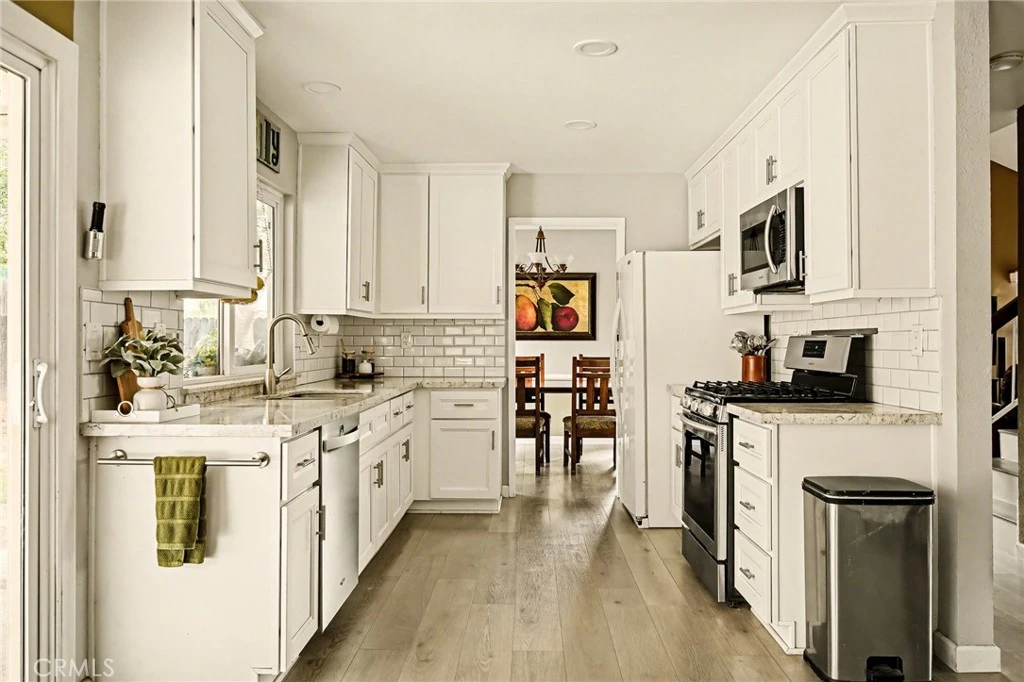 Beautiful well-maintained 4-bedroom home in La Loma Hills. Vaulted ceiling in living room. Kitchen and all three bathrooms have been remodeled. Downstairs primary bedroom. Dining room and family room with fireplace. Spacious backyard with large shed (with electrical outlets) and dog run. Artificial turf in front yard. Dual pane windows. Mountain views. New water heater. Front porch and covered patio in back. RV parking. Fridge, washer and dryer are all staying. No HOA! Low tax rate (1.24%)! Property is NOT in a high fire zone per the Natural Hazards Disclosure. Close to 215, 10, and 91 Freeways. First showings at Open House on Saturday, April 11, 11 am - 2 pm. This is a wonderful opportunity - don't miss it!