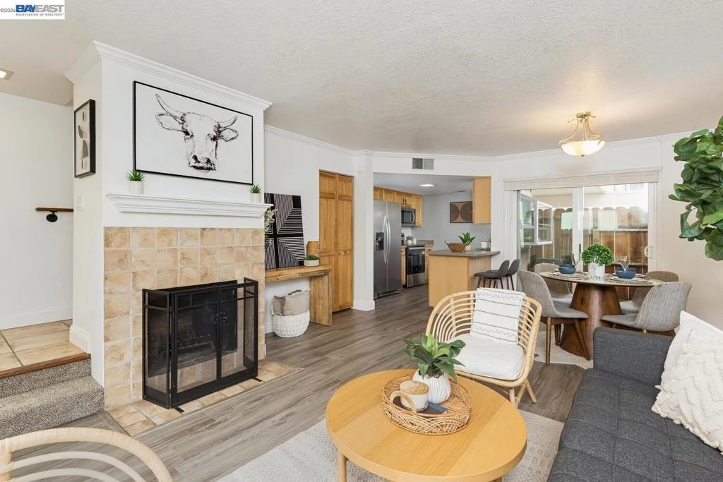 Welcome to this light-filled, thoughtfully updated two-story townhouse in the heart of Concord. This home offers the perfect blend of modern comfort, style, and convenience. Spanning 1,155 sq ft with 2 bedrooms & 2 baths, the home boasts an inviting open-concept main level ideal for everyday living and entertaining. The spacious living room features new laminate flooring , a cozy wood-burning fireplace and two sliding glass doors that lead to private patios. Perfect for al fresco dining, barbecuing, or simply lounging in the sun. The beautifully remodeled kitchen shines with Corian counter tops, abundant shaker-style cabinetry plus pantry storage, and newer stainless steel appliances. The primary suite has vaulted ceilings, a walk-in closet, and large windows that create an airy, bright atmosphere throughout. The second bedroom is equally spacious with vaulted ceilings and natural light. Additional highlights include an in-unit washer/dryer, new water heater, new lighting, dual-pane windows for energy efficiency, and a two car carport, with 5 additional guest parking spaces right out side. This pet-friendly and quiet community. Centrally located for easy commuting, minutes from HWY 242, I-680, BART, Todos Santos Plaza, The Veranda shopping and dining, Costco, parks, schools