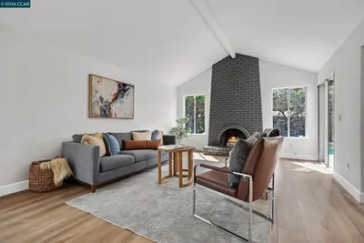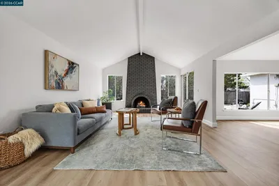Welcome to 5174 Jomar Drive, a beautifully renovated single story rancher tucked at the end of a quiet cul de sac in Concord’s highly sought after Ayers Ranch neighborhood. With stunning curb appeal this 4 bedroom, 2.5 bathroom home offers 2,044 square feet of thoughtfully designed living space on an expansive nearly quarter acre lot with a sparkling pool. From the moment you arrive, you will appreciate the brand new double front doors and designer finishes throughout. Inside, enjoy new hardwood flooring, fresh interior paint, and new carpet in the spacious bedrooms, all complemented by mirrored closet doors and an abundance of natural light. The stunning kitchen is truly the heart of the home, featuring a massive island with breakfast bar, Wolf 6 burner gas cooktop with griddle, Wolf double ovens, stainless steel appliances, two sinks, two dishwashers, subway tile backsplash, and a striking chandelier. Vaulted ceilings elevate both the living room with its cozy brick fireplace and the spacious dining area. The oversized primary suite offers two closets, direct backyard access, and a spa inspired bathroom with a luxurious three way steam shower. The backyard is an entertainer’s dream with a flagstone patio, pool, and generous side yards. Move in ready and designed to impress.
