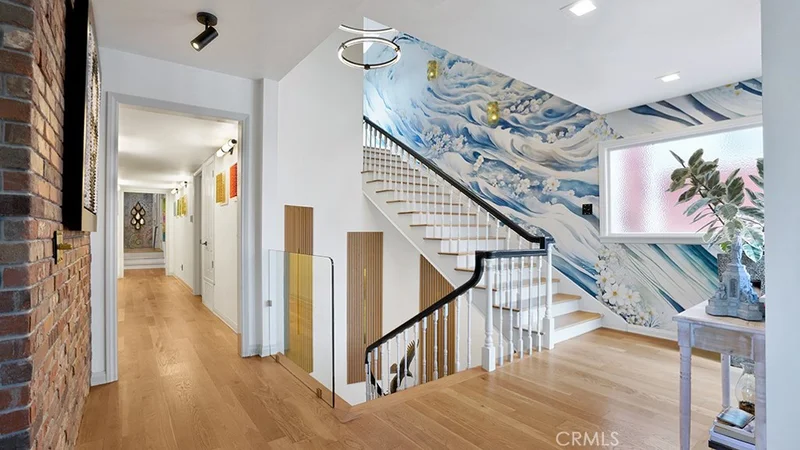 This beautifully reimagined ocean-view penthouse is positioned just four homes from the bluff in the heart of Corona del Mar Village. Offering sweeping coastal views and walkability to Big Corona and Little Corona beaches, along with the Village’s restaurants, boutiques, and cafés, this residence defines refined coastal living. A reclaimed wood gate opens to a private cobblestone courtyard framed by lush landscaping and lighting. Dual entry doors reveal a curved staircase leading to expansive open-concept living spaces framing ocean views. The front lounge and formal dining area showcase stunning water vistas, complemented by solid white oak flooring, custom wood paneling, a statement fireplace, and backlit media wall. A wine and coffee bar with ice maker, wine refrigerator, and on-demand boiling, chilled, and sparkling water enhances daily living and entertaining. The great room flows into the ocean-view kitchen featuring custom white oak cabinetry, oversized island, baker’s cabinet, walk-in pantry, Viking range, and Sub-Zero glass-door refrigerator, accented by bespoke lighting and designer fixtures. A secondary lounge or office wrapped in custom casement windows invites ocean breezes, while dual staircases — including white oak rear stairs — provide rooftop access. The primary suite offers wood-paneled accents, custom display cabinetry, and French doors to a private balcony with sauna retreat. The spa bath includes European glass tile, Bain chromotherapy soaking tub with massage jets, oversized shower, washlet water closet, dual vanities, and custom walk-in wardrobes. Two additional bedrooms include a guest suite and flexible third bedroom currently used as an office, plus approximately 200 square feet of bonus space used as a den. Guest baths feature European tile and designer finishes, and a large laundry room provides extensive storage. The tandem two-car garage includes tile flooring, built-in cabinetry, and a dumbwaiter for transport to the main level. Above, an approximately 300-square-foot rooftop deck captures panoramic 180-degree views of the Pacific Ocean, Catalina Island, San Clemente Island, Newport and Balboa Piers and multi-city fireworks views on the 4th. Designed for entertaining with a built-in teak lounge, fire feature, eight-seat bar, and integrated storage. Meticulously upgraded and move-in ready, this residence presents a rare opportunity to own a premier coastal home in one of Orange County’s most coveted seaside enclaves.