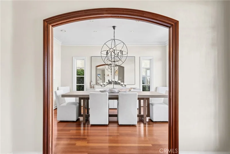 Set on an expansive 45 foot wide lot at the highest point of the street, this exceptional coastal residence captures sweeping ocean views and effortless indoor-outdoor living. A sprawling brick front patio serves as a quintessential seaside welcome framed by ocean vistas and seamlessly connected to the living room and formal dining room through walls of glass. Inside, the living room showcases coffered ceilings, a statement fireplace with classic mantel, custom built-ins. Thoughtfully appointed, the entertainer's kitchen supplies a Wolf oven, microwave, and six-burner range, reverse osmosis, granite countertops, a center island, appliance garage, walk-in pantry, and built-in desk. A sunlit breakfast nook is surrounded by windows overlooking the private backyard, complete with a built-in BBQ, outdoor shower, and spa plumbing, creating a natural extension of the home’s entertaining spaces. The adjacent family room offers another fireplace, custom built-ins, and a wet bar, while a dedicated wine room accommodates 500+ bottles for the discerning collector and entertainer. Additional main-level amenities include a spacious powder room, a private ensuite bedroom with tub and shower, and a well equipped laundry room with sink and abundant storage. The three car garage features soaring ceilings and storage, while whole home conveniences such as central vacuum, hot water circulation, and dual A/C systems enhance everyday comfort. A dramatic spiral staircase rises to a central gallery hall, introducing the home’s private bedroom level. The primary wing offers ocean views, a viewing balcony, a cozy seating area with a double-sided fireplace shared with the spa-inspired bath, and a morning coffee bar designed to savor the scenery without ever leaving the suite. Dual closets, including a generous walk-in, provide ample wardrobe storage. The primary bath features a jetted soaking tub, walk-in shower, dual vanities, makeup station, and a discreet TV cabinet. Three additional bedrooms complete the upper level: two connected by a Jack-and-Jill bath, and a fifth bedroom suite with its own tub and shower and private deck. For sunset gatherings and elevated coastal living, the spectacular rooftop deck delivers panoramic vistas spanning the Pacific Ocean, Fashion Island, the golf course, and shimmering city lights.