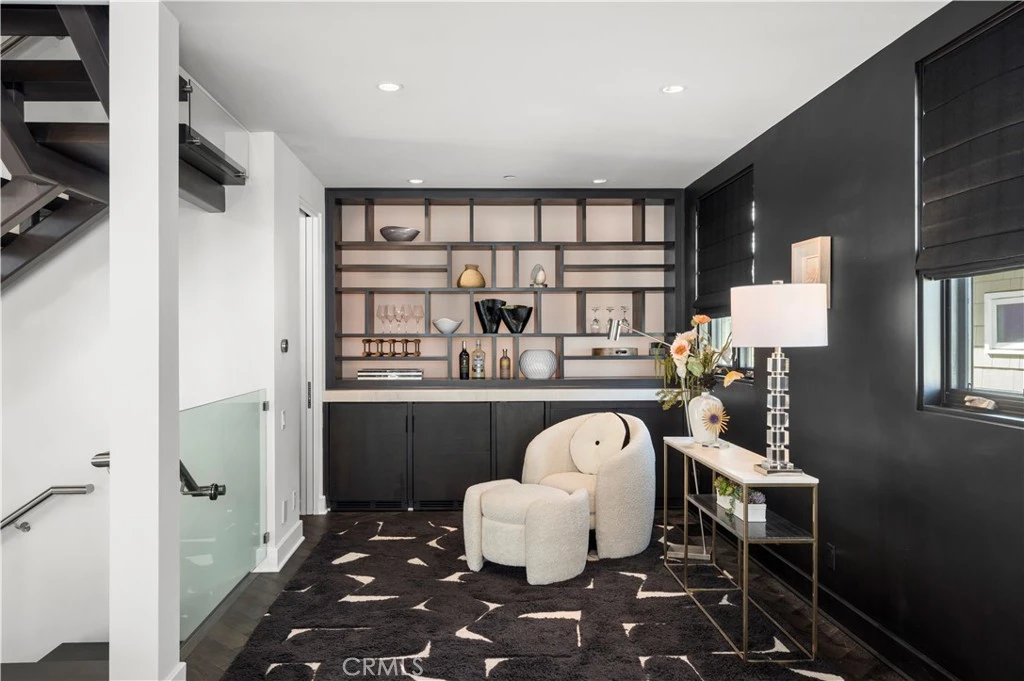 Wet Bar, Breakfast Bar, Built In Features, Central Vacuum, Separate Formal Dining Room, High Ceilings, Living Room Deck Attached, Multiple Staircases, Open Floorplan, Stone Counters, Recessed Lighting, Wired For Data, Bar, Wired For Sound, Bedroom On Main Level, Primary Suite, Walk In Closets